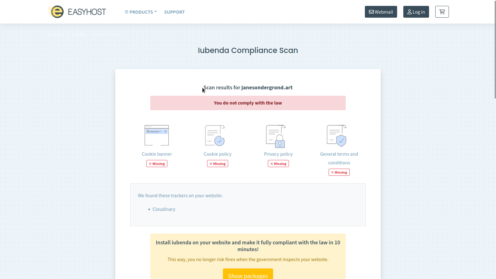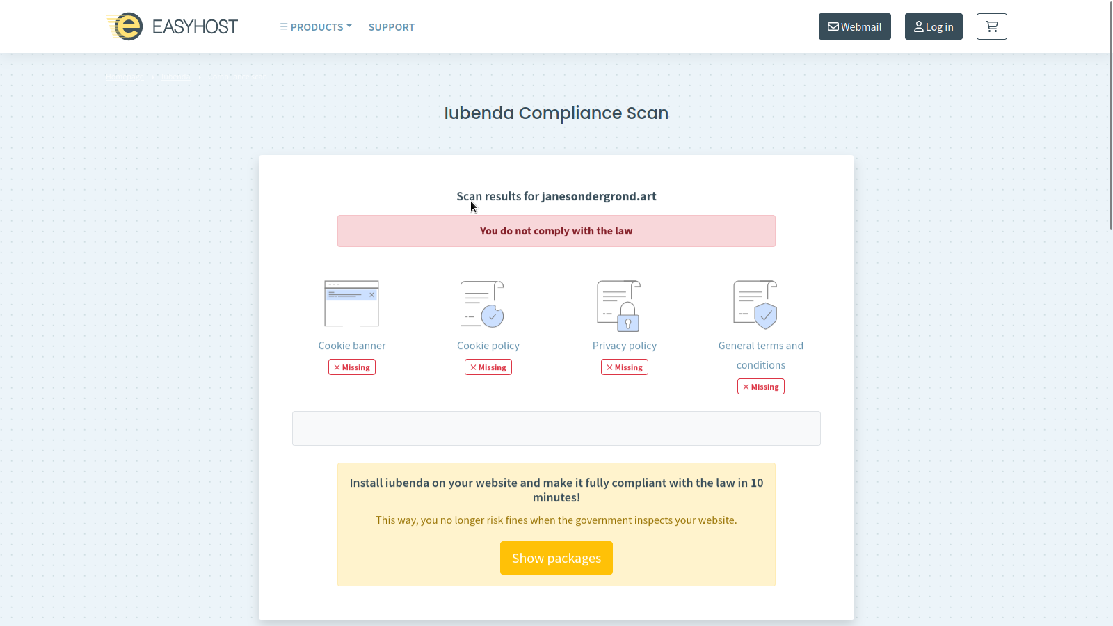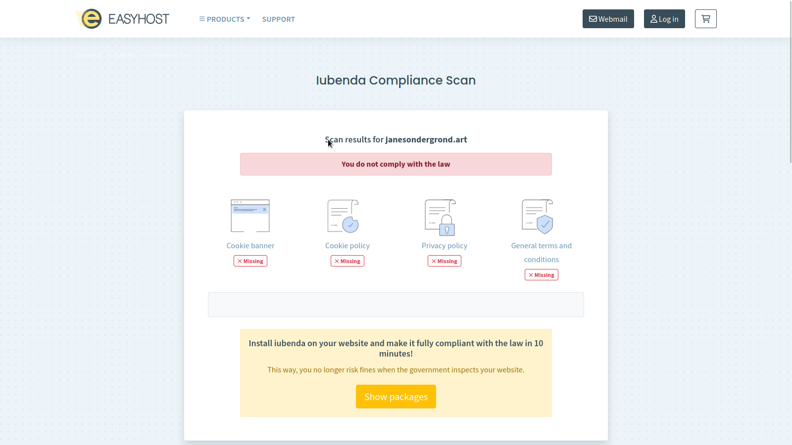 So my blank page is illegal and breaking the law on four points ... tho the other page that says "we use no cookies" and "we dont track" (because there are no logins) and "if you are offended by anything at all dont enter this site"